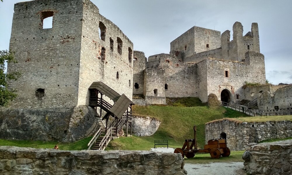 Aber es handelt sich nur um den kleineren Teil vom Burgareal. Es geht um einen Raum, der von einer massiven Befestigung sowie mit anderen Burggebäuden umgeben ist. In Mitten dieses Hofes steht ein ehemaliger Pferdestall, der zurzeit als Ausstellungsraum dient.